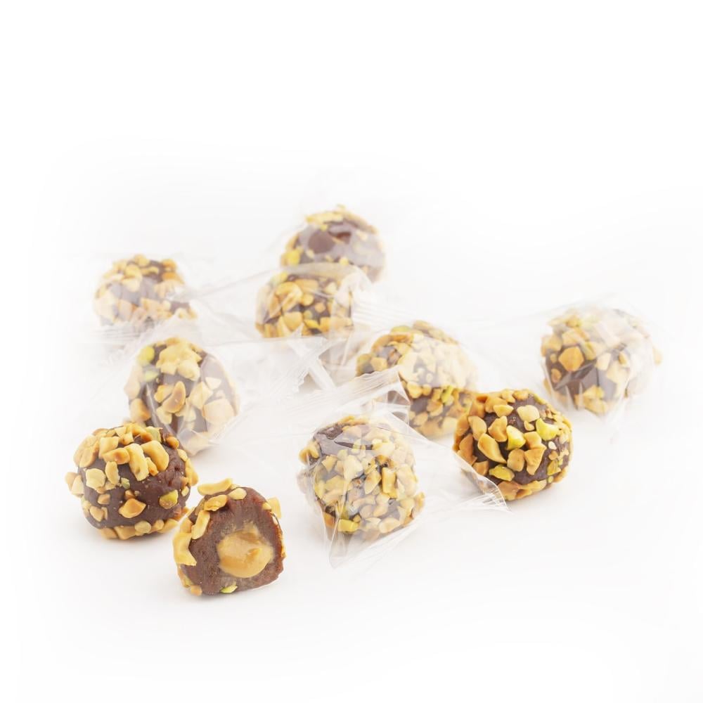 كرات تمر محشوة بالطحينة بالكيلو و مغطاة بالمكسرات مغلفه كل حبه مذاق رائع و صحيالمكونات : تمر - طحينة - مكسرات